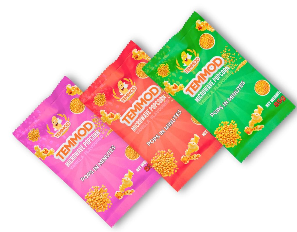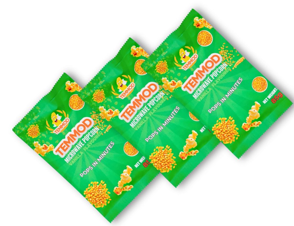 TEMMOD Microwave Popcorn is proudly the first locally produced microwave popcorn in Nigeria. Inspired by the need for quick, tasty, and convenient snacking, we created TEMMOD to bring joy to family movie nights, office breaks, school snacks, and every fun gathering.